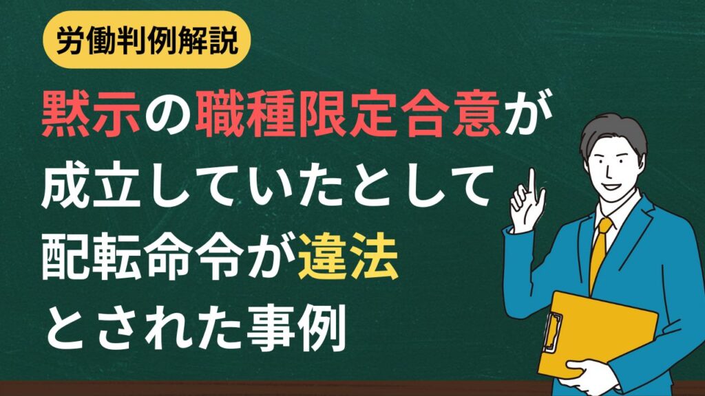 - 黙示の職種限定合意が成立していたとして配転命令が違法とされた事例~大阪高裁令和7年1月23日判決(労働判例1326号5頁)~